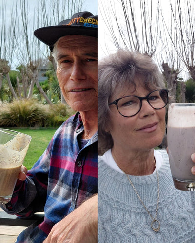 His & her pic of us enjoying our midday shake. This is my first meal of the day, the lad still needs a hearty breakfast. Six months and going strong. Both have found our mojo for what works in our shakes. I look and feel better with the change in diet and certainly don't run out of energy. We've discovered the nutribullet is the best method for blending our shakes. So much simpler than using the stick blender we were previously.