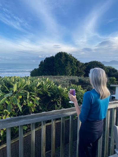 Enjoying Gary’s smoothie and the sweeping views from the deck.